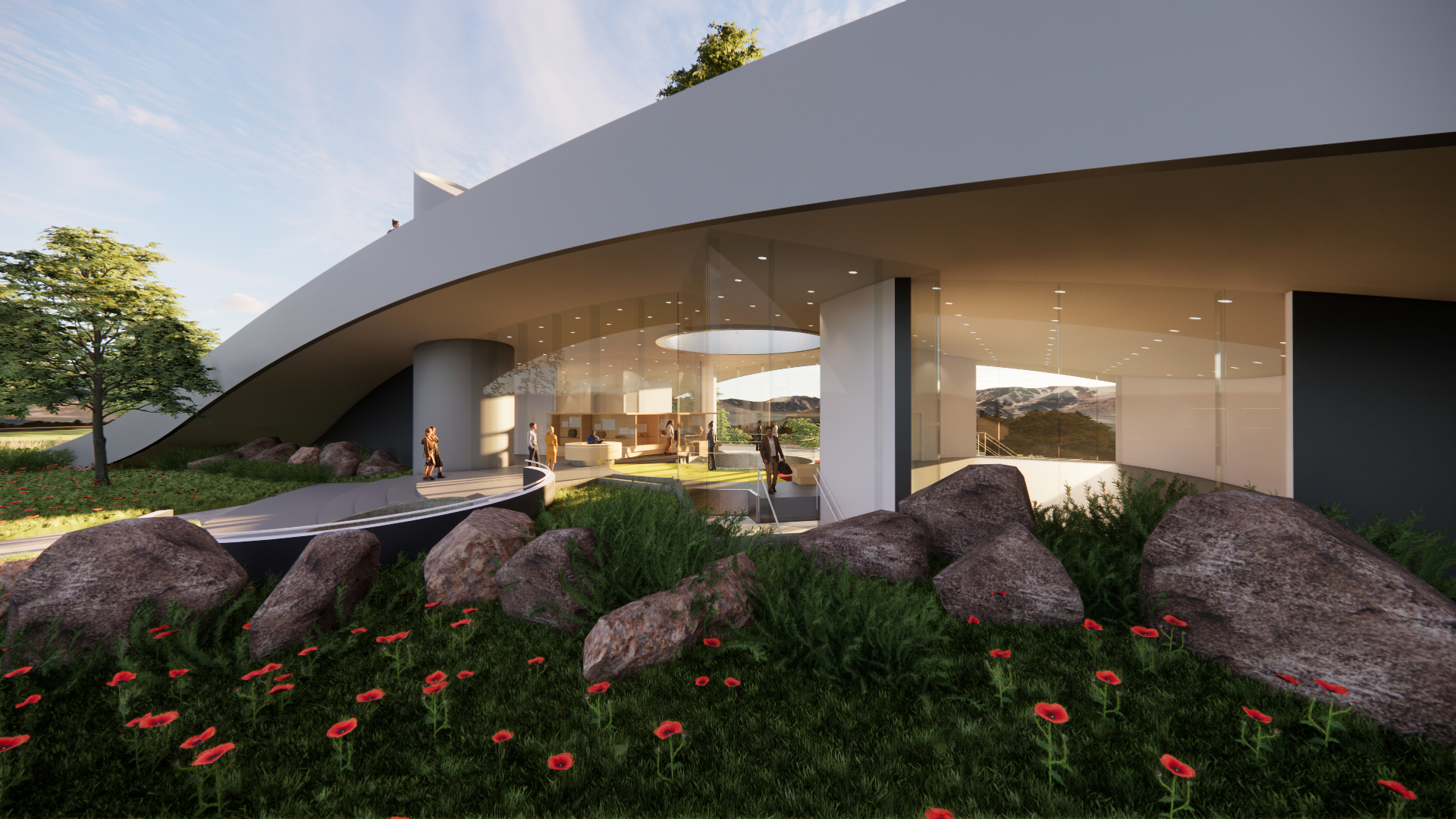 A former 20-acre ranch along the San Joaquin River will become a LEED Platinum Indigenous and Environmental Cultural Center, consisting of the Visitor Center and the Meetinghouse. The project restores natural habitats and incorporates buildings in harmony with nature utilizing passive sustainable strategies.The 11,500 Visitor Center is a two-story earth shelter building. The gently sloped green roof system terminates into an amphitheater on the north.