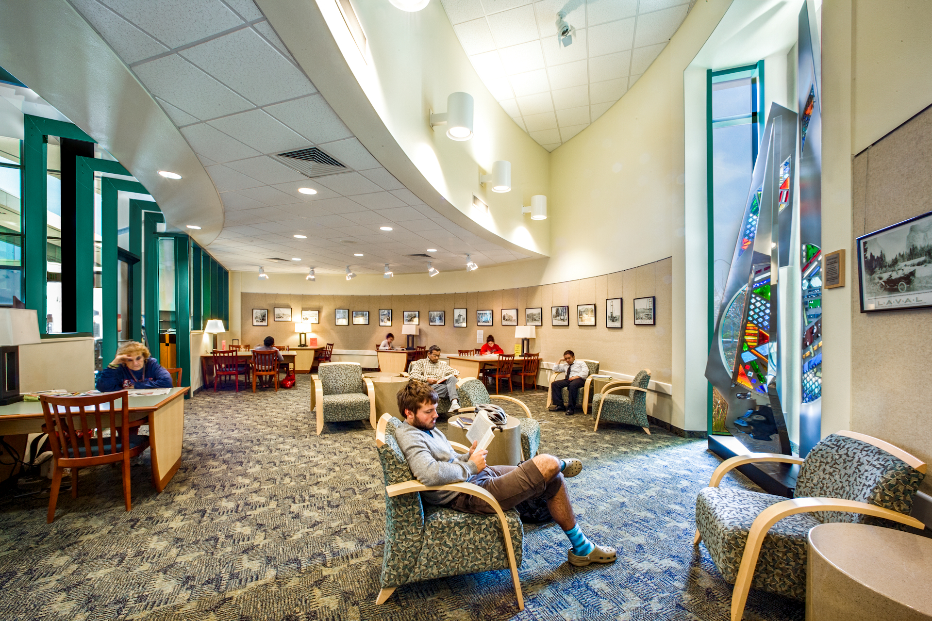 Resolving the contrast between a prominent civic building and a transitional suburban context, the design of this 22,050 square foot facility takes cues from an adjacent riverway and trailhead to produce a flowing form that invites vehicular traffic and pedestrian passersby to engage with a community services as they move from commercial to residential districts.